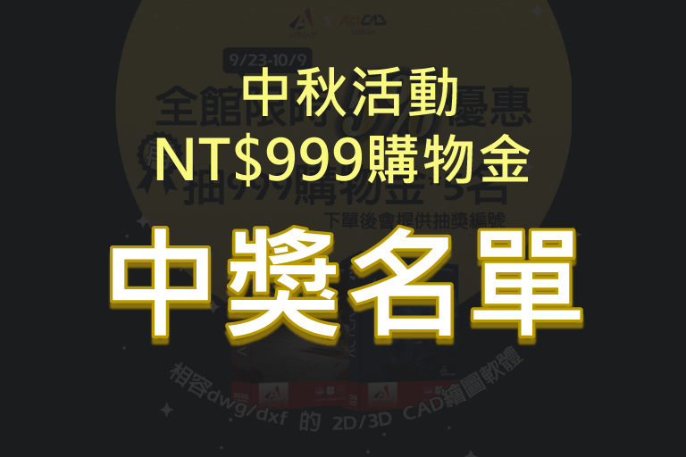 感謝以下客戶對ActCAD的支持,恭喜獲得購物金NT999元