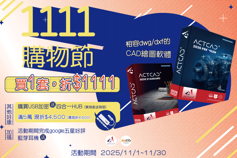 購買ActCAD產品,立即使用NT$666折扣劵(選完規格後至購物車查看,立即點選折價劵使用)